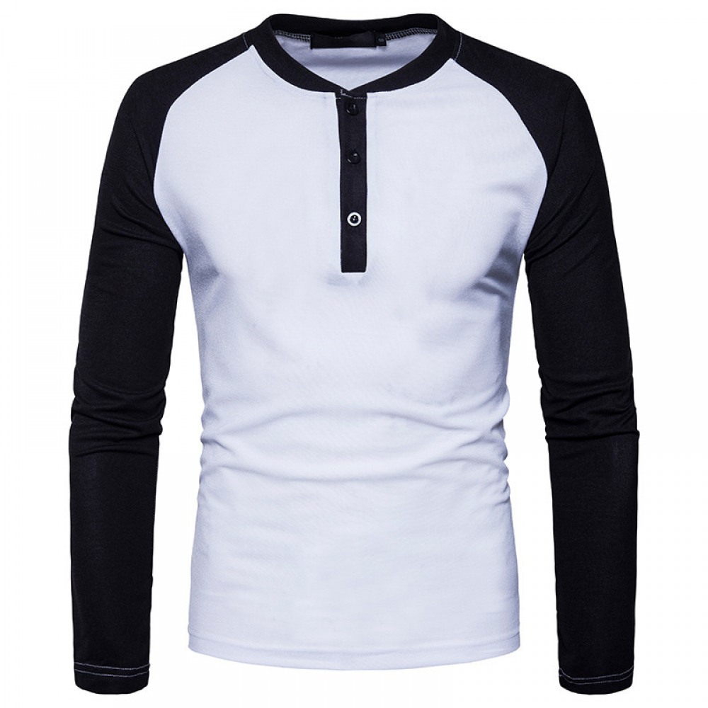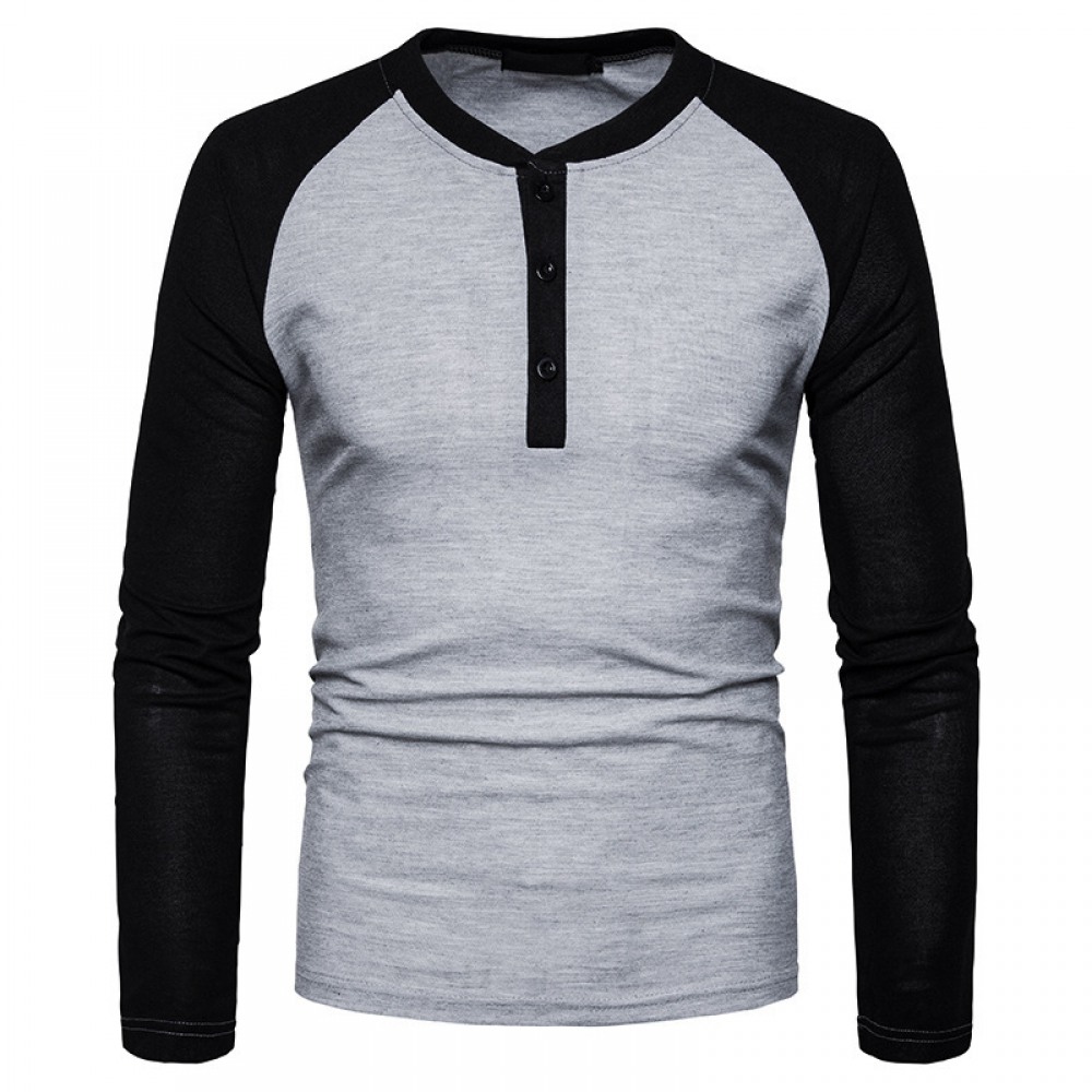 Men's Henry Collar Color Matching Long-Sleeved Plus Size T-Shirt