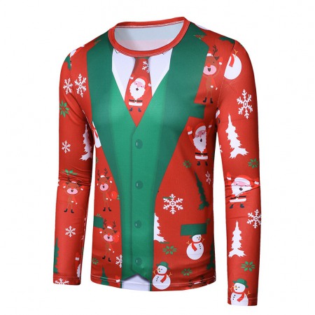 New 3D Personality Printing Fashion Men's Christmas Long-Sleeved T-Shirt