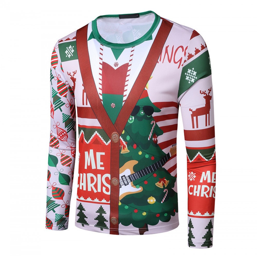 New 3D Personality Printing Fashion Men's Christmas Pattern Long-Sleeved T-Shirt