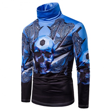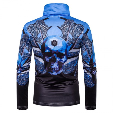 New Men's Large Size 3D Snake Print Skull Print High Neck Long Sleeve T-Shirt Bottoming Shirt