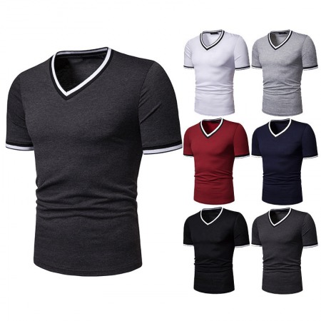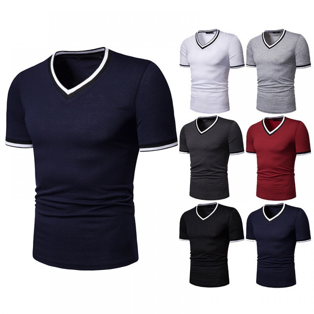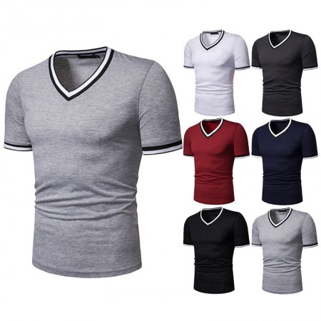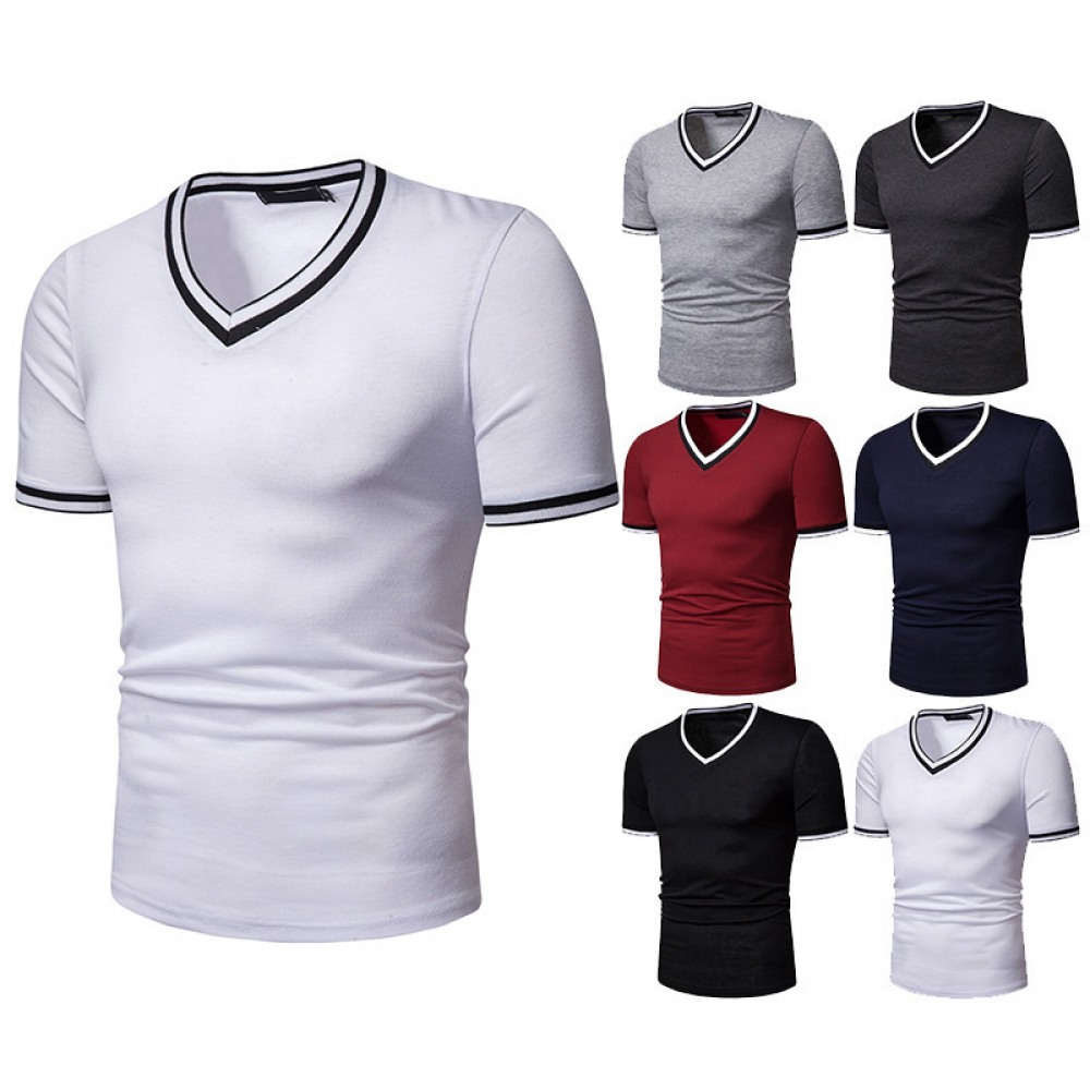 New Summer Men's Short-Sleeved T-Shirt Mens Contrast Striped Slim Casual T-Shirt