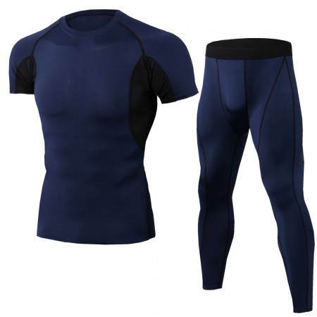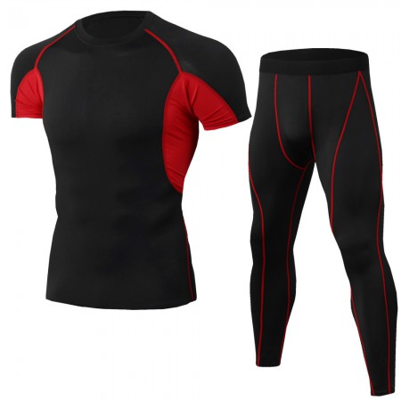 Summer Men's Casual Fitness Clothing Sports Quick-Drying Short-Sleeved T-Shirt Training Running Stretch Tights Suit