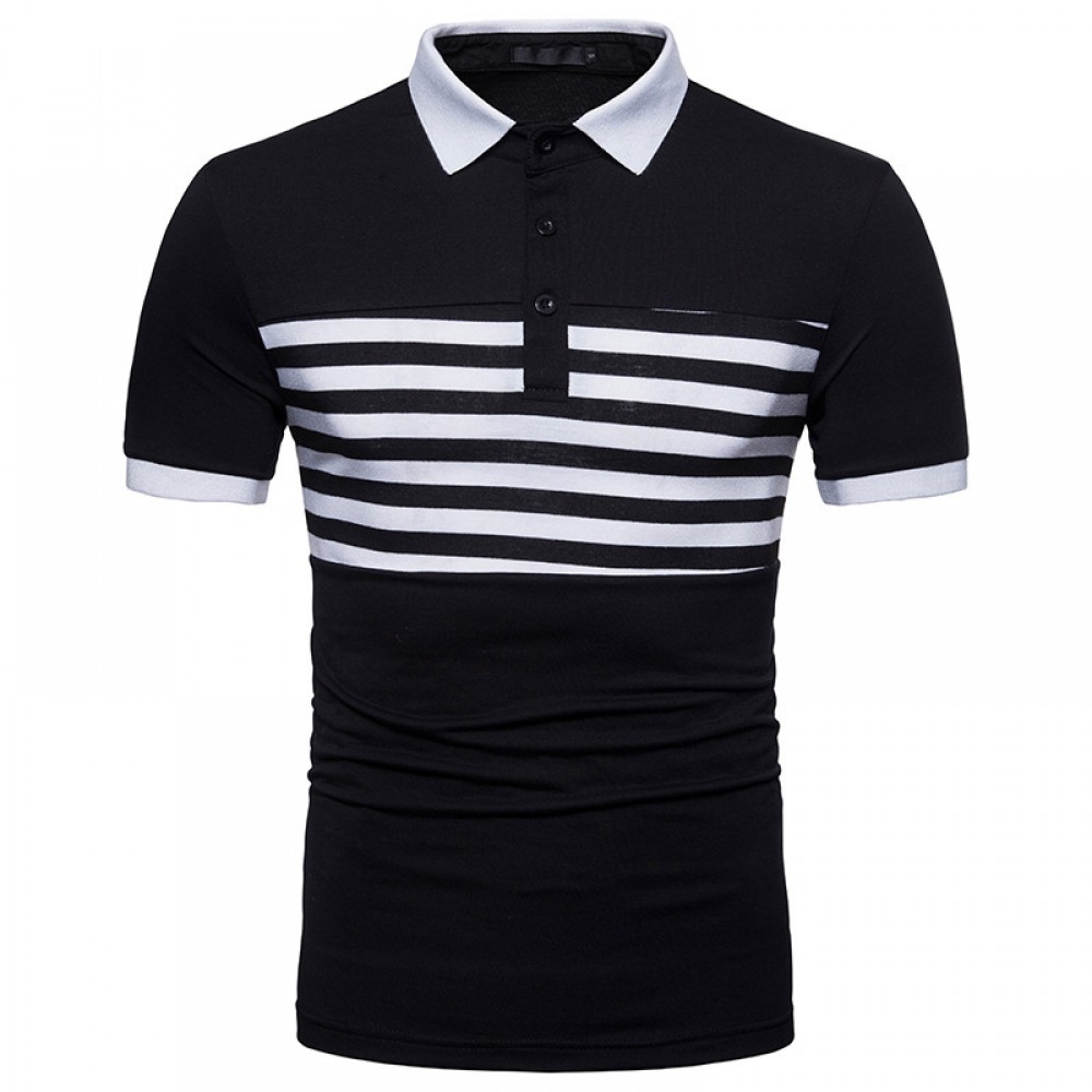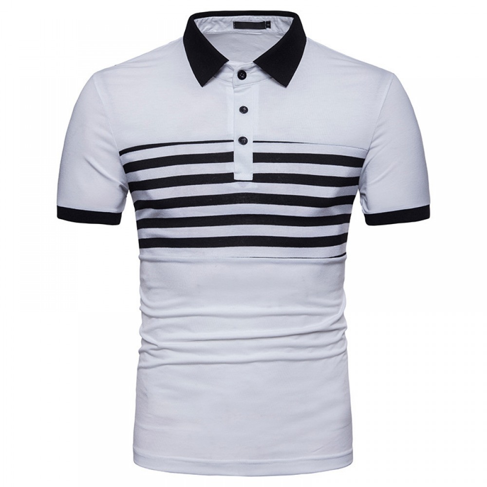 Summer Men's Short-Sleeved T-Shirt Small Lapel Striped Polo Shirt Mens Slim Trend Shirt Collar