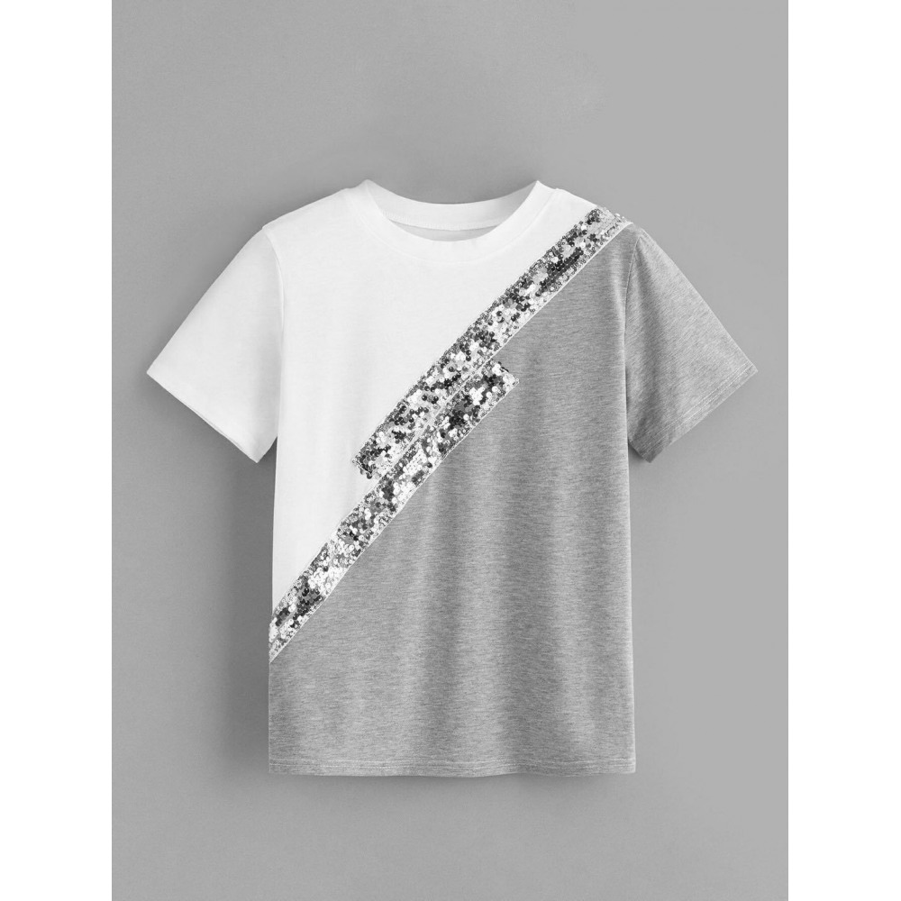 Summer New Color Matching Sequined T-Shirt